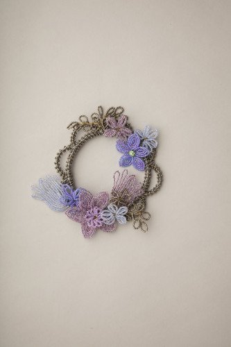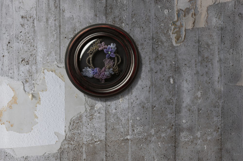 Stunning, handmade glass bead floral ring to hang or frame. Shown in our large 3D domed wooden frame. D17cm See product story below for more information...