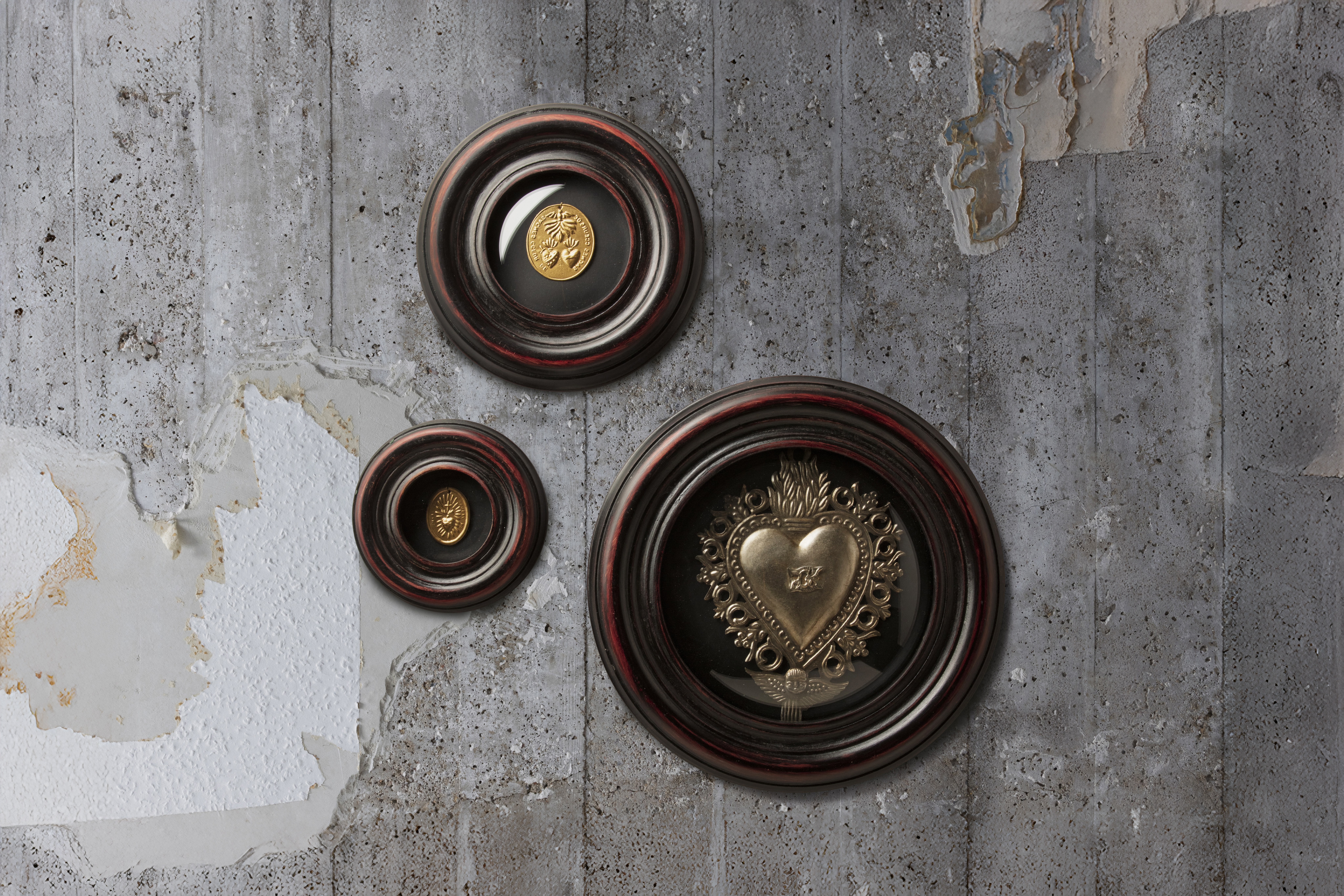 Round wooden frames with domed glass and opening back to showcase all your treasures and mementos. In three complimentary sizes to group or hang individually.
