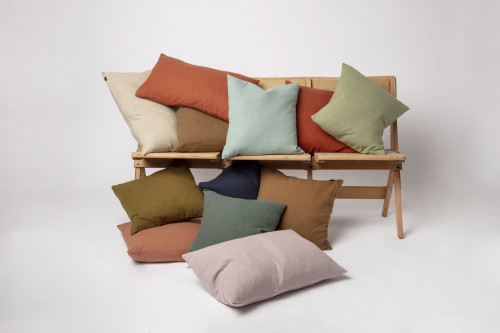 A collection of plain linen rich cushions in a sophisticated colour range. Available in two shapes each with envelope opening and feather pad. 52% linen 48% cotton, dry clean or handwash. Rectangular 60 x 40cm Square 45cm